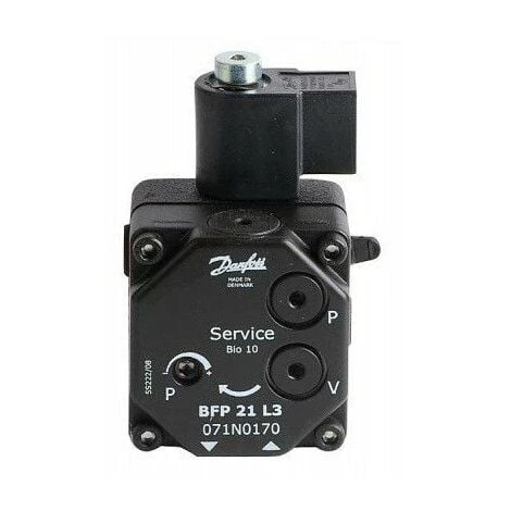 Pompe à fioul compacte BFP21 L3 Diamond.2 sorties gicleur.Sens de rotation : gaucheLivré avec électrovanne 220/240 V, 50/60 Hz.