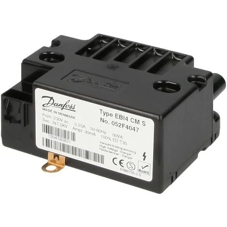 Les unités d´allumage EBI4 CM et EBI4 C1P sont développées pour uneapplication où un amorçage constant est nécessaire.EBI4 CM est une version bipolaire avec une mise à la terre centrale.EBI C1P est une version monopolaire pour un amorçage entre une electrode et la masse.Raccordement au réseau: 230 V – 0,25 A – 50/60 Hz – 60VAZone de fonction: 187 à 255 VRaccord primaire: 3 x 0,75 mm²