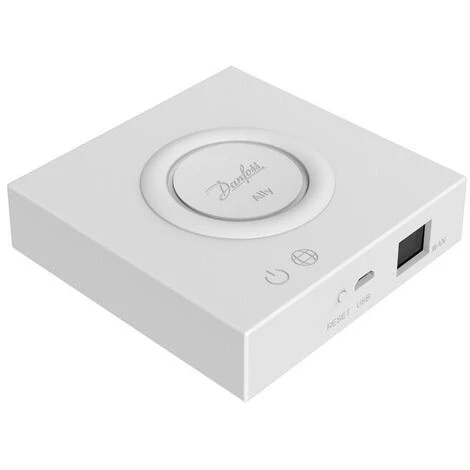 La passerelle Danfoss Ally™ est un système de régulation sans fil programmable qui connecte tous les appareils Danfoss Ally™ à Internet et régule votre chauffage de manière intelligente via une application gratuite téléchargeable à partir de Google Play e