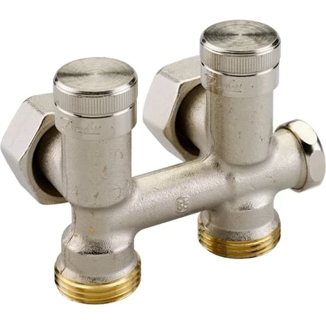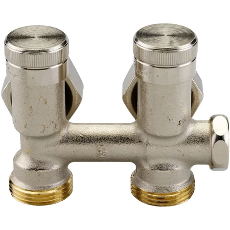 Les répartiteurs RLV-K permettent le raccordement rapide et esthétique des radiateurs à robinetterie intégrée ou radiateurs universels à entraxe de 50 mm.